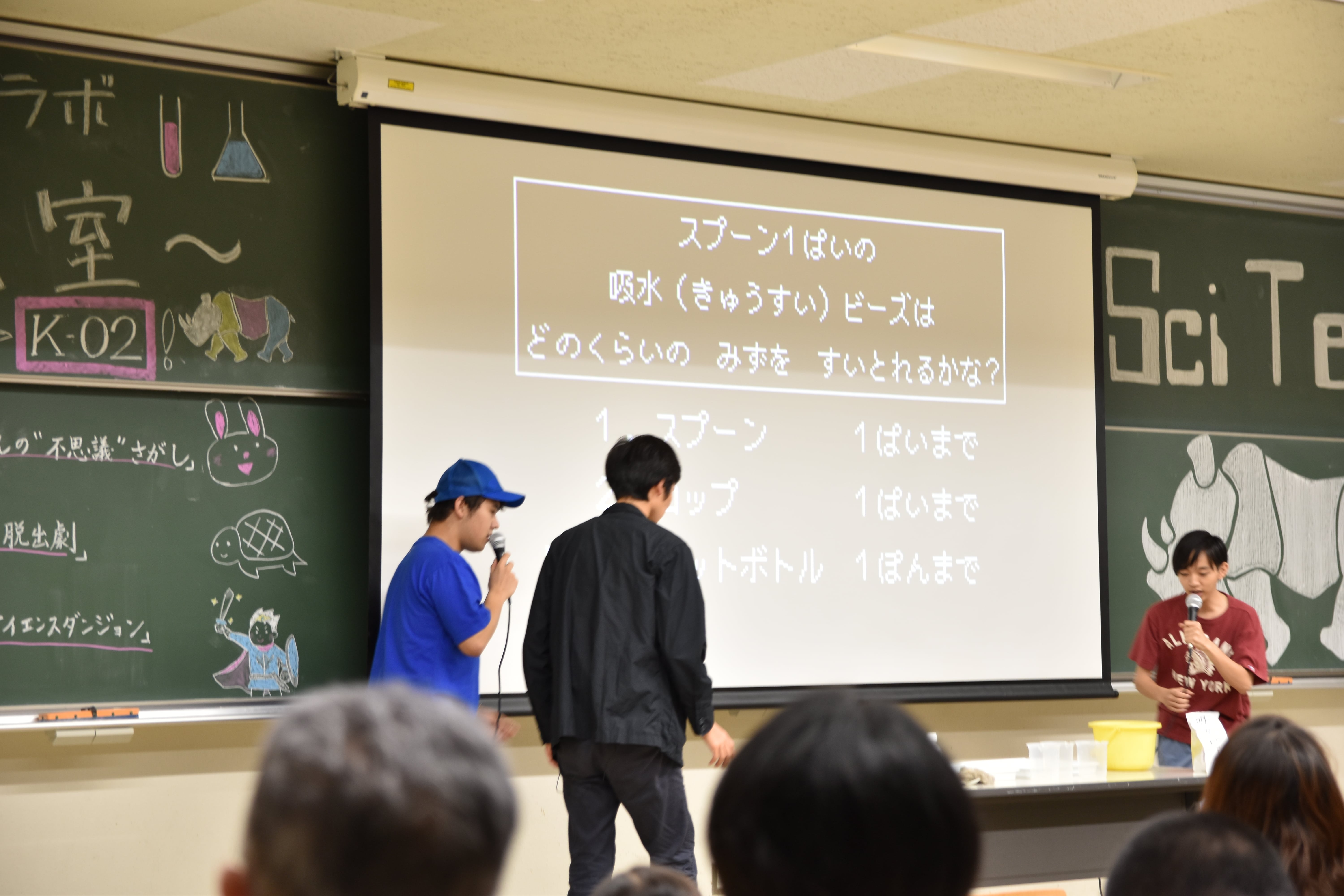10月に行われる東工大の大学祭、工大祭はサイテク最大のイベントです。2018年度は、構内の講義室を使用して行うショー企画や教室企画、体育館を使用して、科学に関する演示を行う展示企画を行いました。部員が一丸となって参加するイベントで、準備や当日の運営も大変ですが、最終日には非常に充実感を覚えられることでしょう。